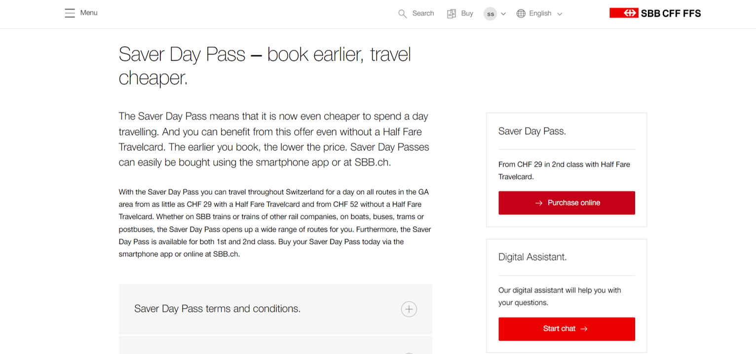 세이버데이 패스는 스위스 국철 (SBB)에서 구매가능합니다.