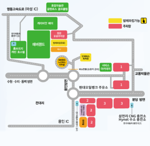 에버랜드에 방문하실 때 보통 차량으로 많이들 방문하실 텐데 에버랜드에는 3종류의 주차장이 존재합니다.