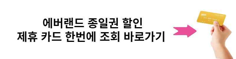 시간낭비하지 않고 에버랜드 종일권 50% 할인 가능한 제휴카드 한 번에 조회 가능합니다.